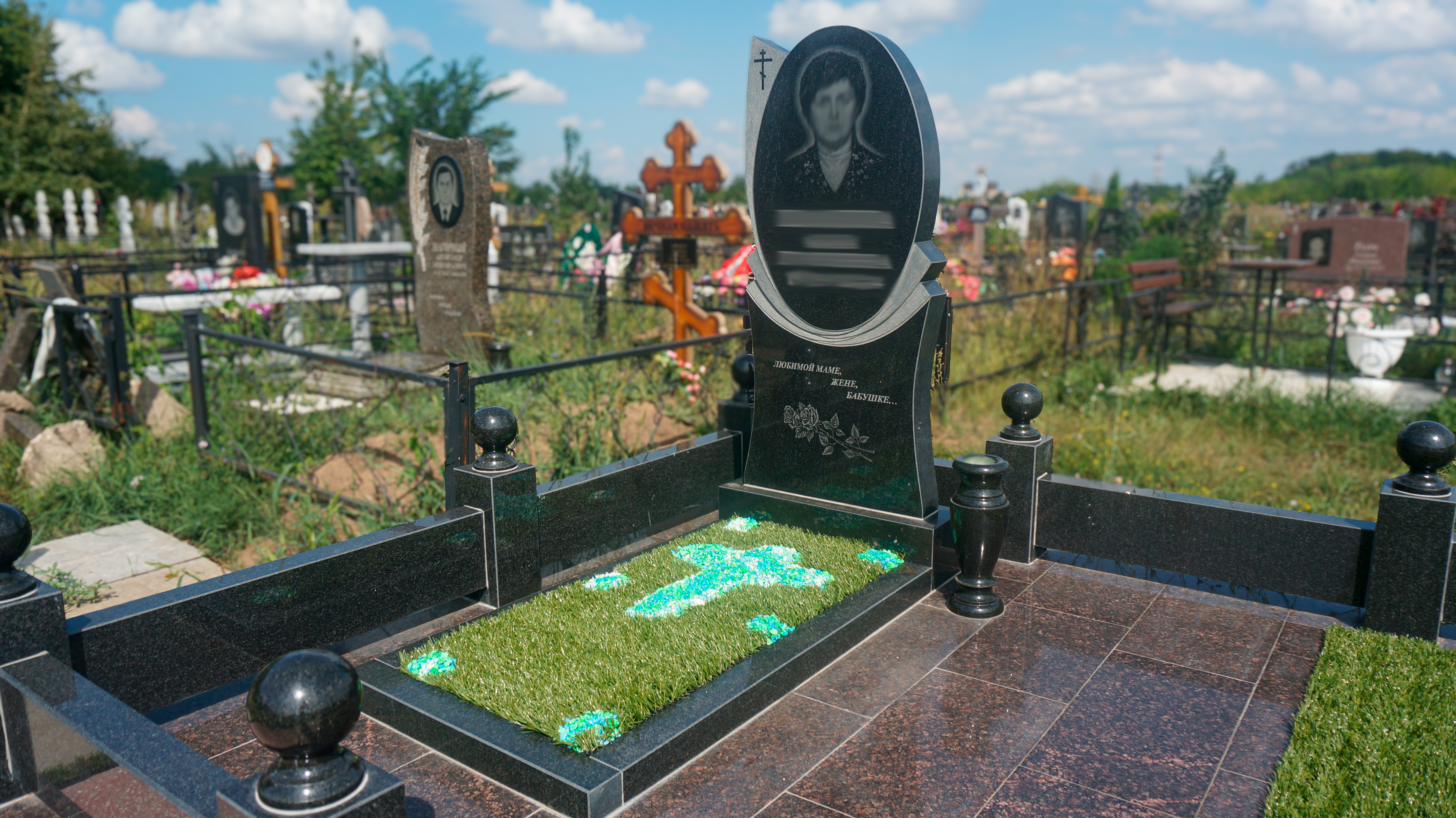 Дополнительно оплачиваются: гравировка (портрет, ФИО+даты, крестик, эпитафия, цветы), подготовка комплекта, оградка, установочные работы, доставка